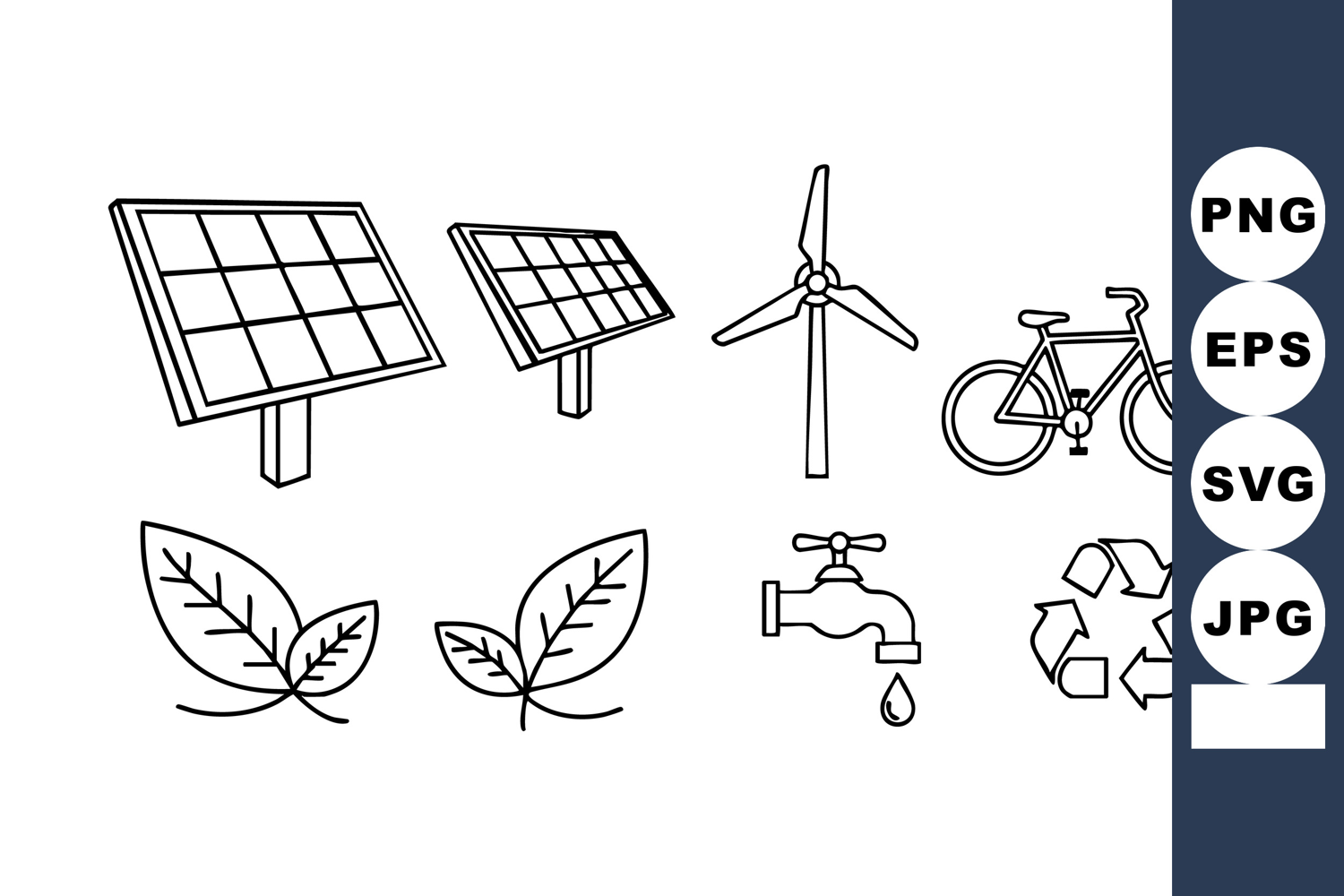 Solar Panel Icon Eco Friendly Design Recycling Symbol Vector Clean Energy Icon Wind Turbine Icon Bicycle Eco Symbol Leaf Nature Icon Water Faucet Drop Renewable Energy Set Environmental Icon Pack
