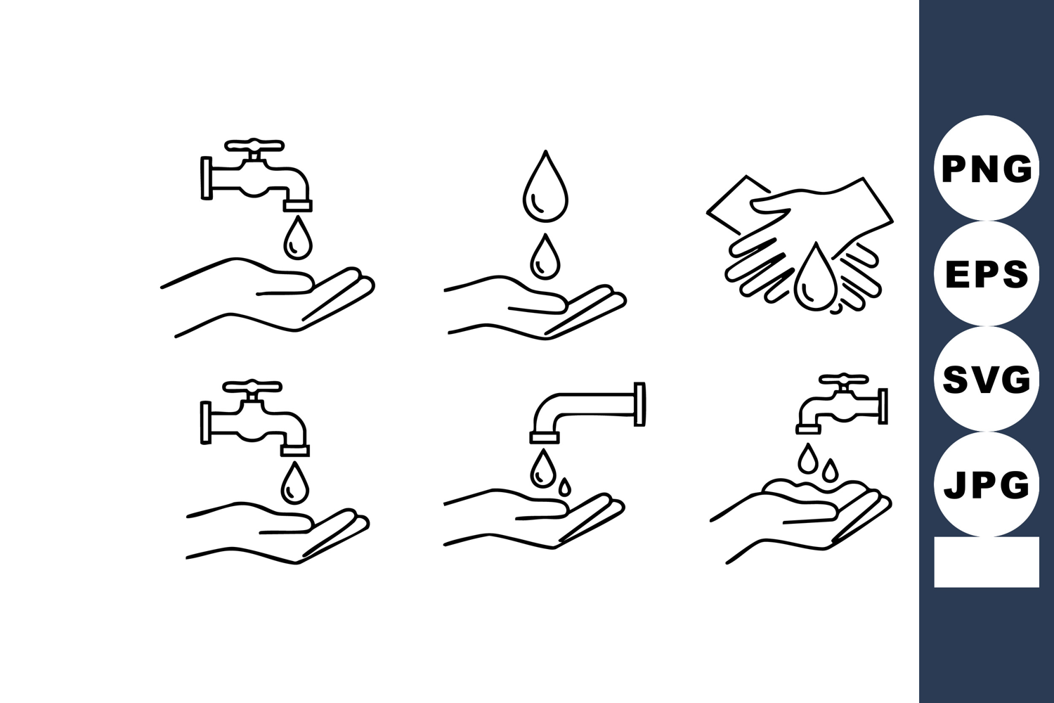 Hand Washing Faucet Hygiene Icons Vector example image 1