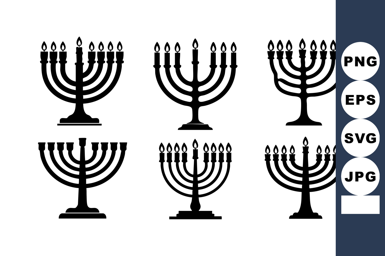 Hanukkah Menorah Icons Vector Silhouette Set example image 1