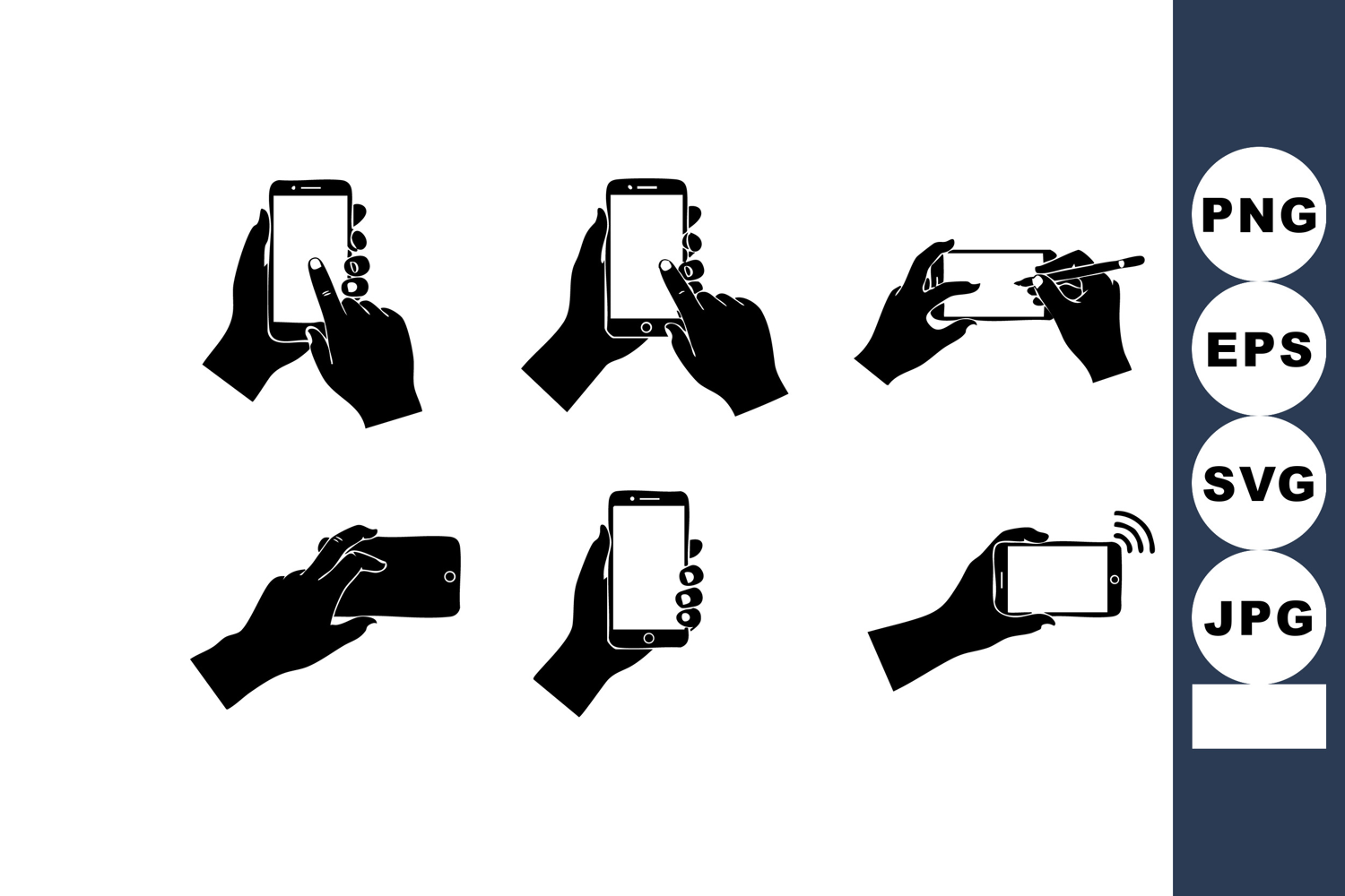 Black Silhouette Hands Holding Smartphone Gestures example image 1