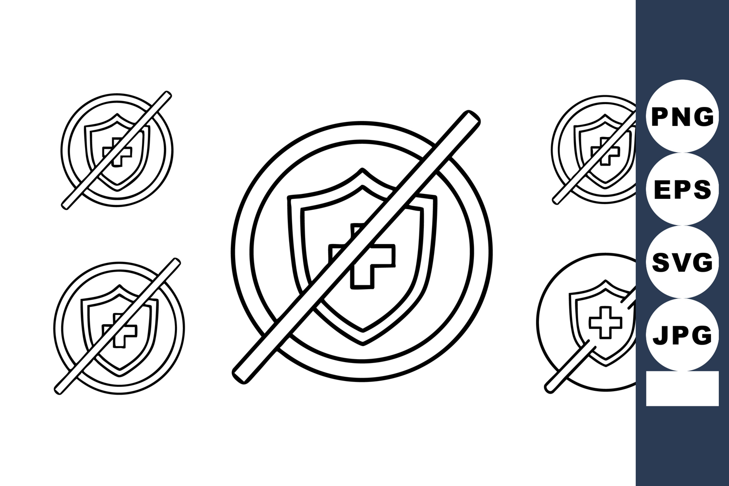 White Background Design Clean Simple Design Black Outline Style No Protection Security Security Shield Icon Multiple Sizes Isolated Minimalist Vector Illustration Protection Shield Symbol Security Warning Sign No Protection Icon