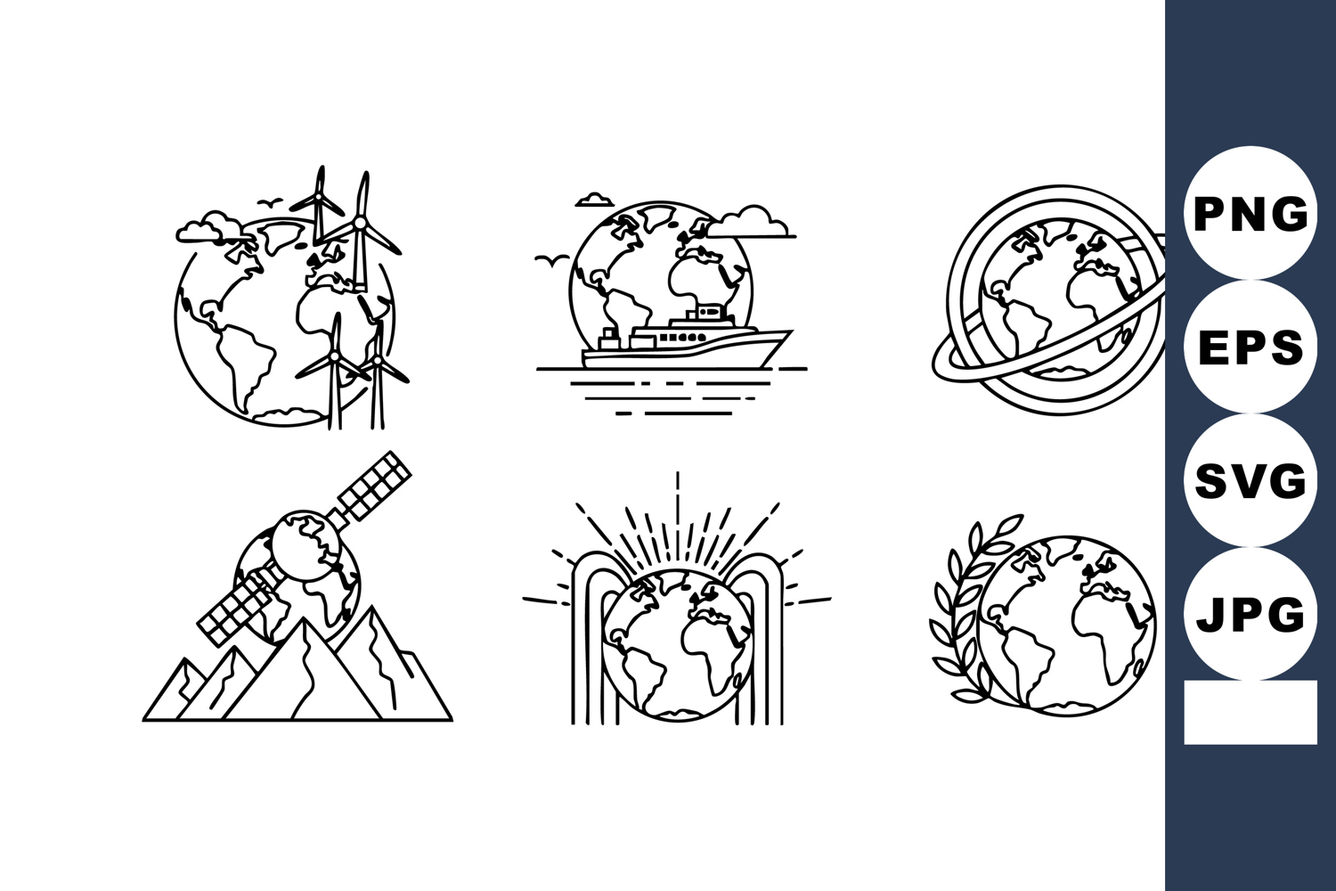 Earth Globe Vector Icons Windmill Satellite Ship Laurel Wrea example image 1