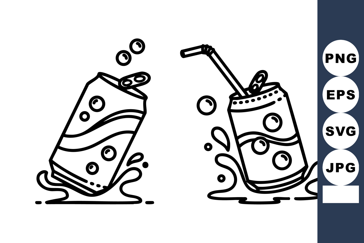 Black Line Art Simple Vector Illustration Carbonated Drink Bubbles Soda Cans Splashing Water Bubbles Splash Refreshing Soda Can Bubbles And Splash Effervescent Soda Pop Metal Soda Can Round Open Can