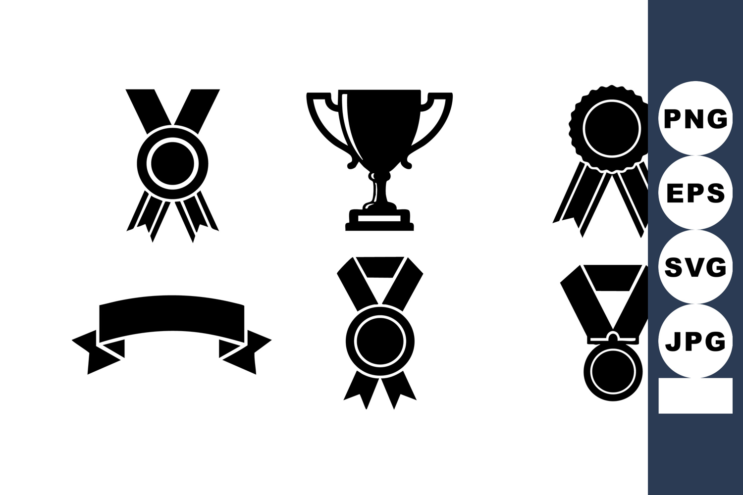 Set Vector Illustration Design Black Shapes Icons Set Vector Vector Illustration Collection Illustration Collection Design Award Medal Trophy Medal Trophy Ribbon Trophy Ribbon Icons Ribbon Icons Set Collection Design Black