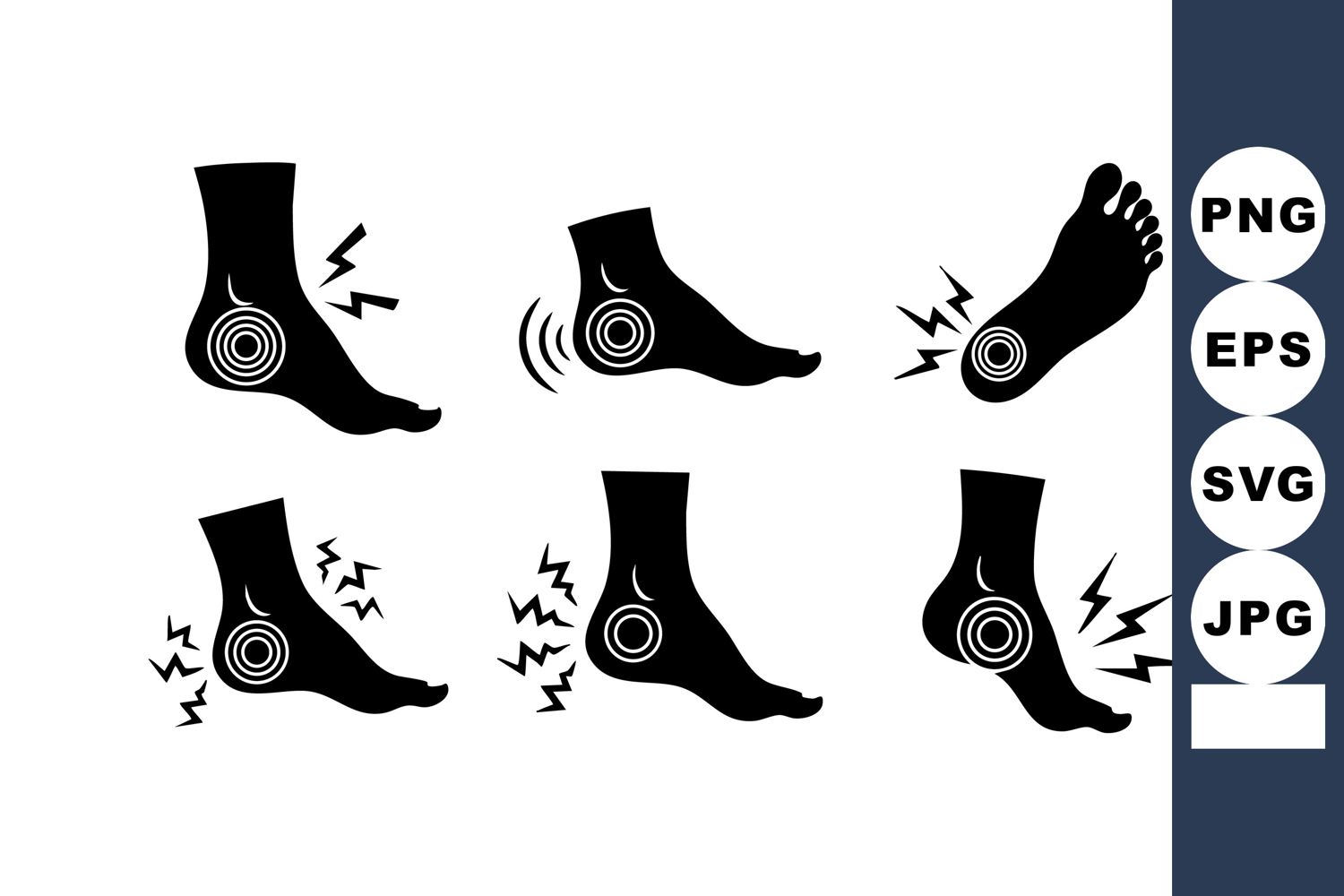 Health Care Vector Foot Pain Icons Foot Injury Icons Foot Ache Vector Medical Foot Illustration Footache Pain Symbols Black Silhouette Foot Foot Pain Target Pain Symbol Icons Foot Ache Symbols