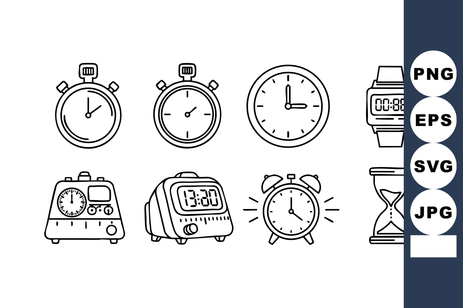 Clock Timer Stopwatch Alarm Digital Icons Set example image 1