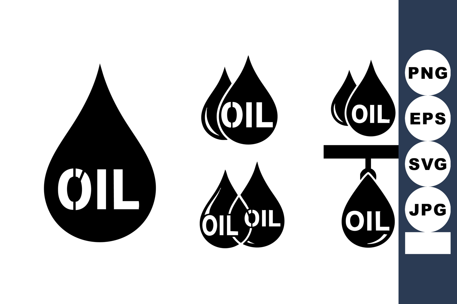 This vector file shows black oil drop icons with clear bold shapes representing energy and industry themes in a minimalistic style. The design is clean and professional. Calm mood.