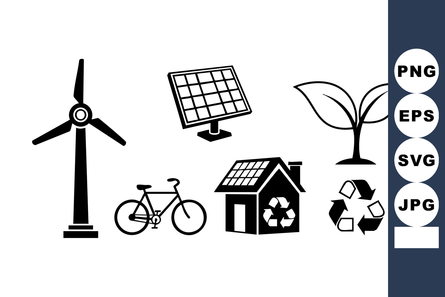 Renewable Energy Icons Wind Turbine Solar Panel Bicycle example image 1