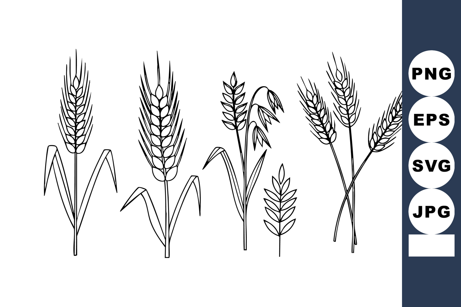 White Vector Illustration Black White Outline Black White Cereal White Cereal Grains Cereal Grains Vector Outline Cereal Grains Wheat Rye Oat Rye Oat Barley Crop Rural Farming Natural Outline Black