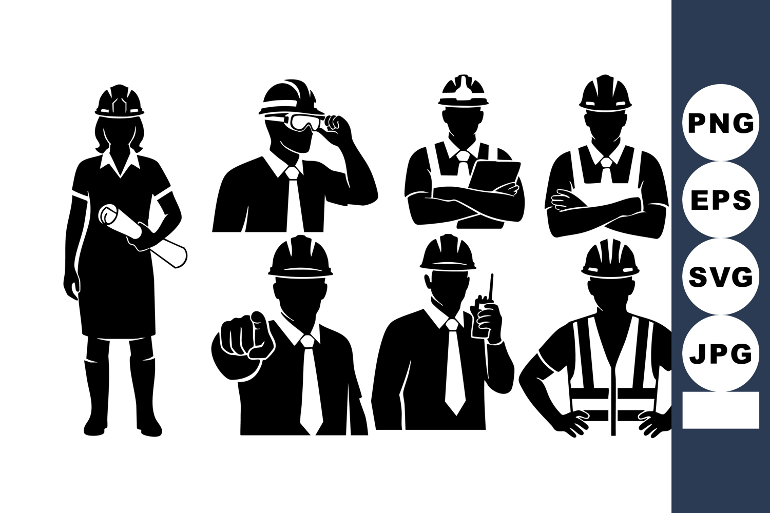 Construction Worker Silhouette Worker Silhouette Vector Silhouette Vector Set Construction Safety Helmet Worker Safety Gear Industrial Project Design Worker Helmet Safety Professional Worker Silhouette Worker With Clipboard Construction Worker Team