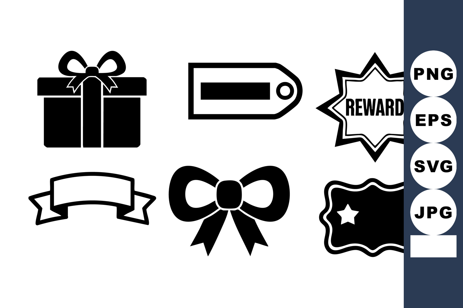 Gift Box Reward Tag Ribbon Bow Label Banner Icons