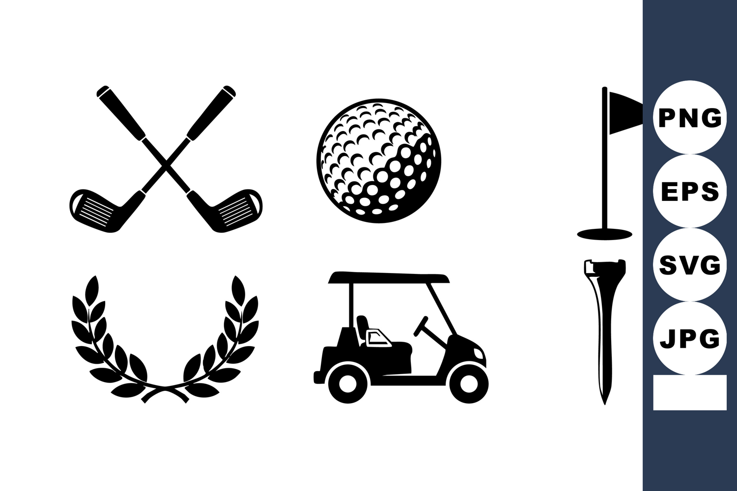 Laurel Wreath Design Golf Cart Vector Golf Equipment Vector Golf Ball Illustration Golf Clubs Crossed Golf Flag Icon Golf Tee Black Golf Sport Theme Black White Golf Golf Club Vector