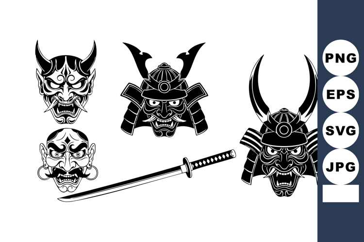 Similar Design Products to Samurai Helmet Demon Mask Katana Sword Vector Illustration