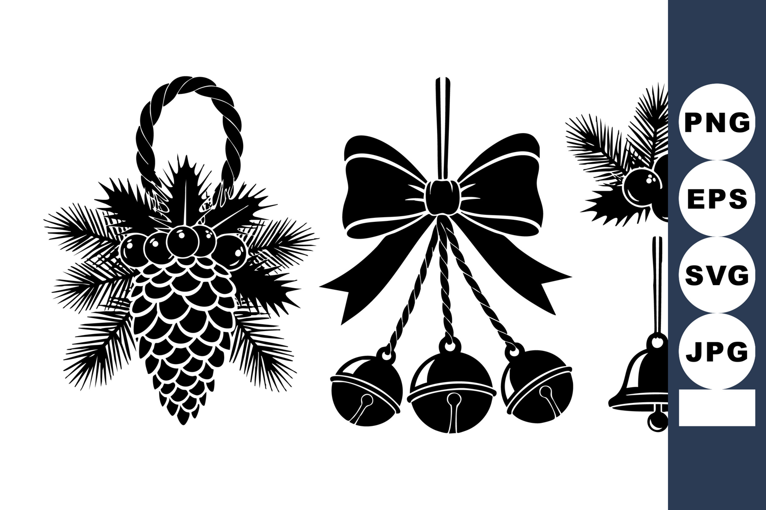 Christmas Pine Cone Bell Mistletoe Decoration Silhouette Vec example image 1
