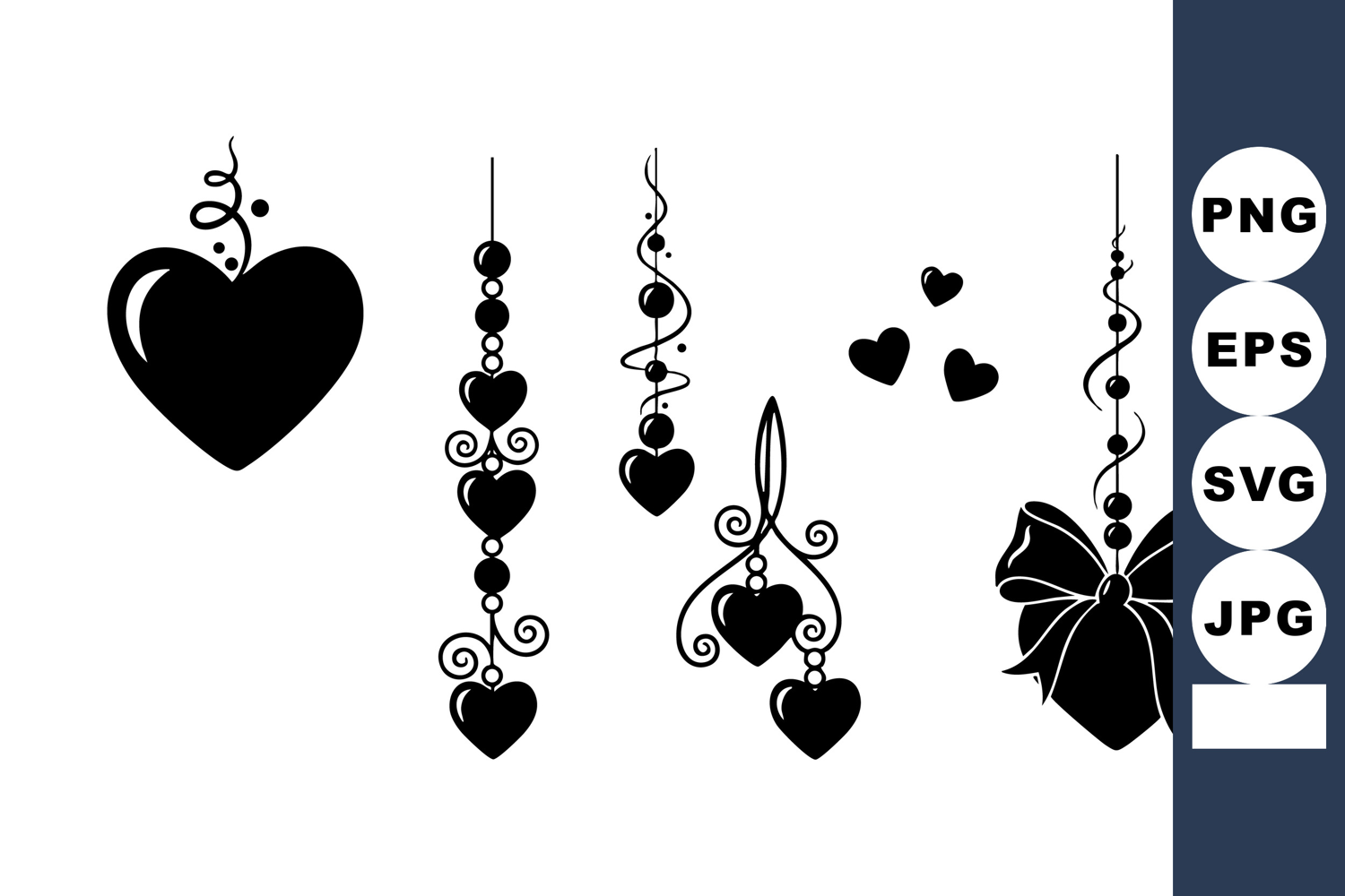 Hanging Heart Decorations Bow Silhouette Vector example image 1