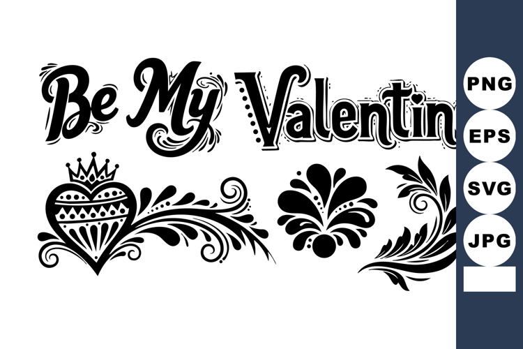 Heart With Crown Vector Illustration Black Black White Vintage Valentine Decorative Heart Crown Floral Swirl Floral Swirl Ornamental Swirl Ornamental Design Ornamental Design Vector Vintage Style Romantic Romantic Love Greeting