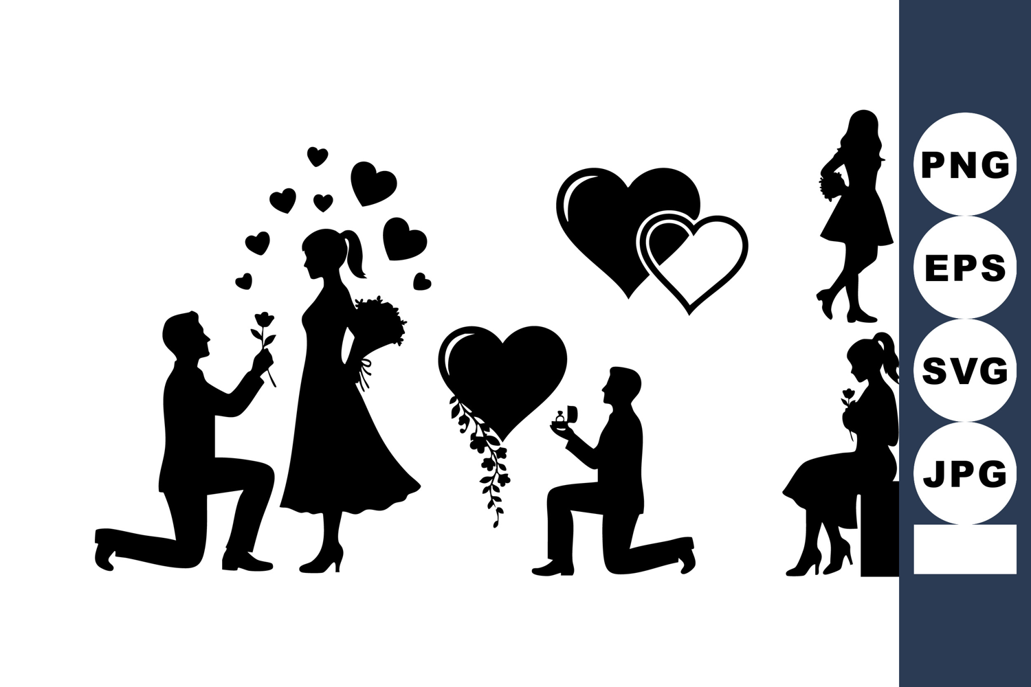 Romantic Couple Silhouette Love Proposal Vector example image 1