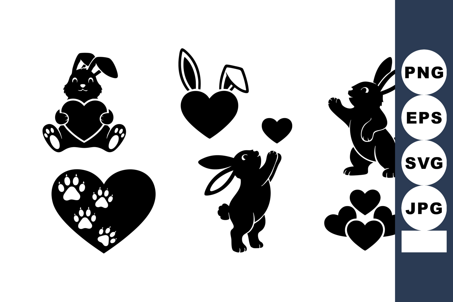 Love Heart Silhouette Heart Shape Love Cute Bunny Cartoon Rabbit Holding Heart Bunny Love Design Black Bunny Rabbit Rabbit Silhouette Vector Playful Bunny Rabbit Animal Silhouette Black Rabbit Sitting Standing