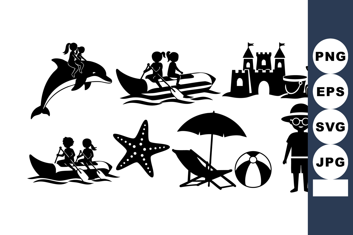Beach Vacation Silhouettes Dolphin Sandcastle Vector example image 1
