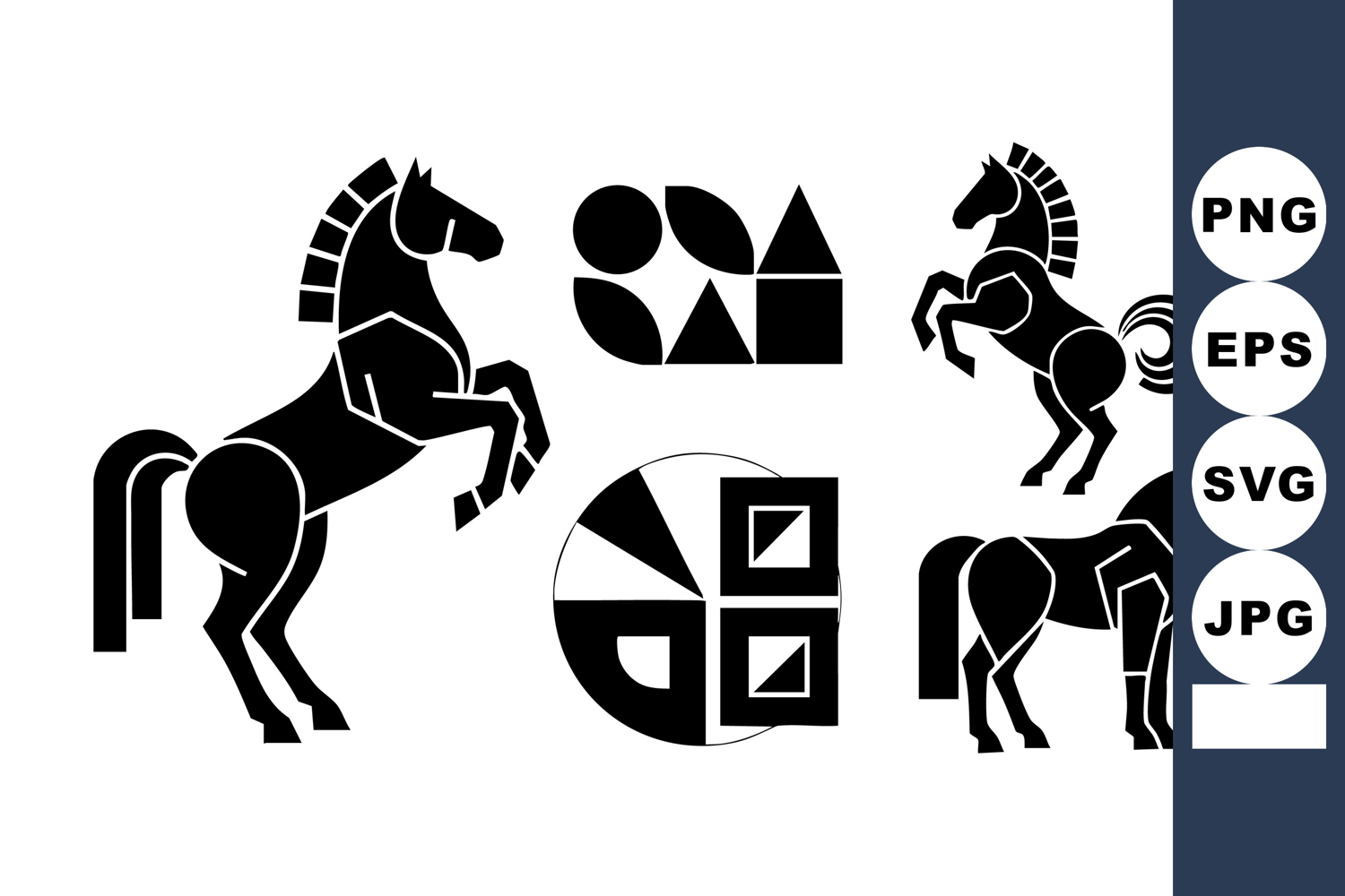 Black Horse Silhouettes Geometric Vector Design example image 1