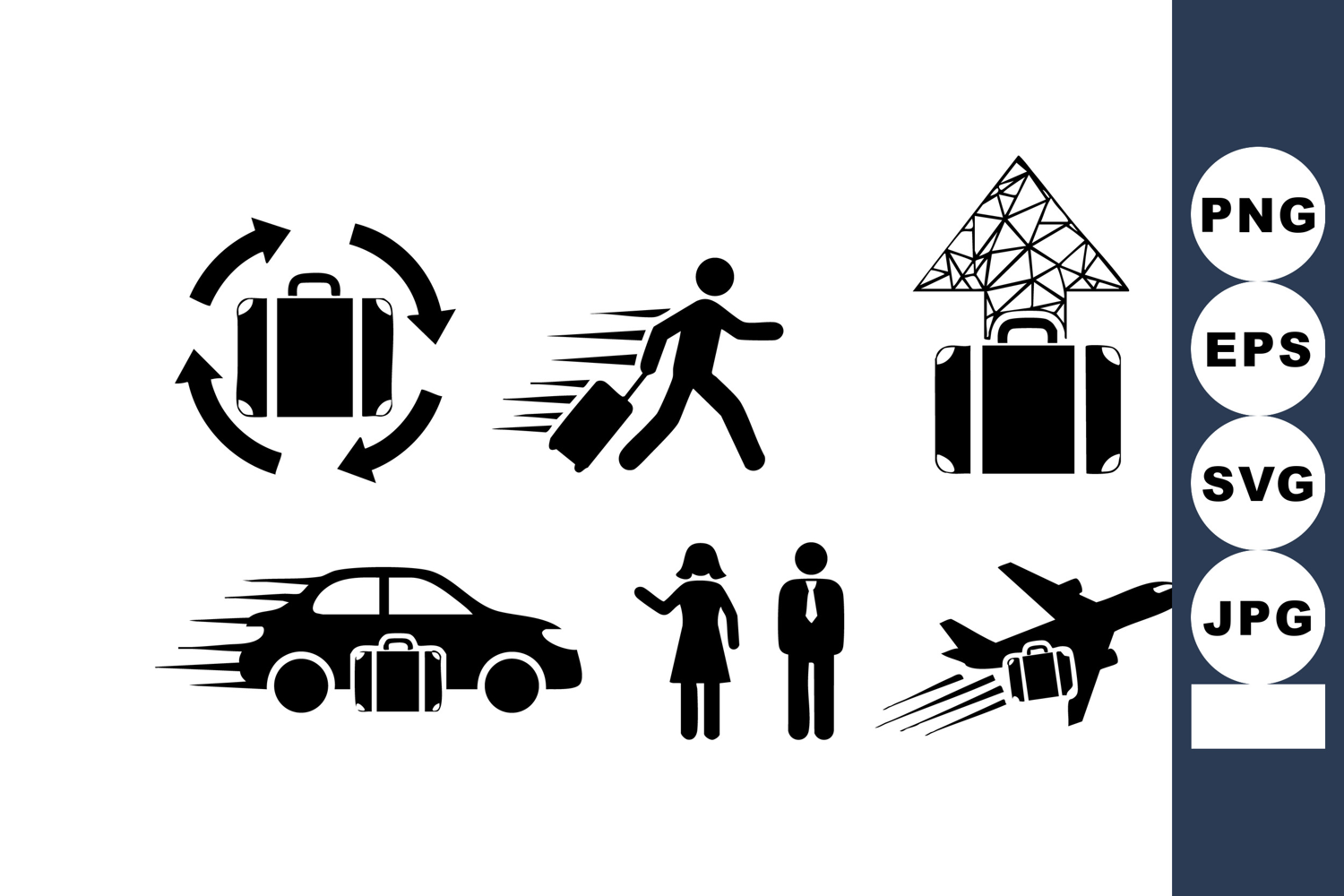 Travel Icons Suitcase Black Travel Icons Suitcase Luggage Transportation Luggage Transportation Airplane Transportation Airplane Car Airplane Car Pedestrian Car Pedestrian Airport Pedestrian Airport Vector Airport Vector Illustration Travel Icons Rotation