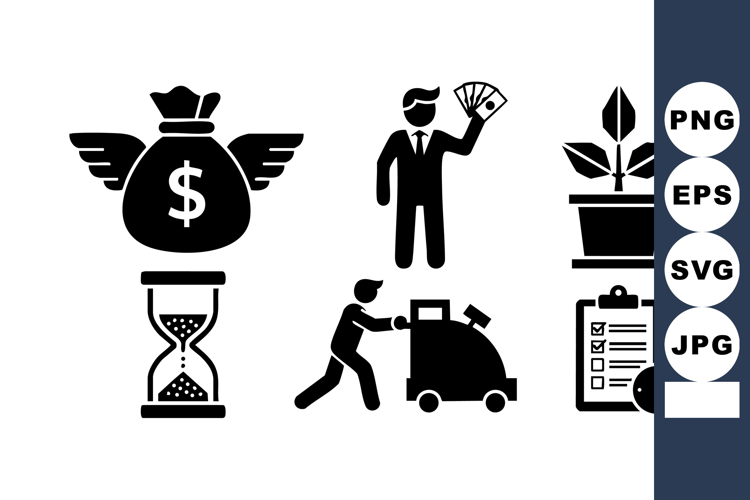 Business Finance Growth Money Time Icons Set example image 1