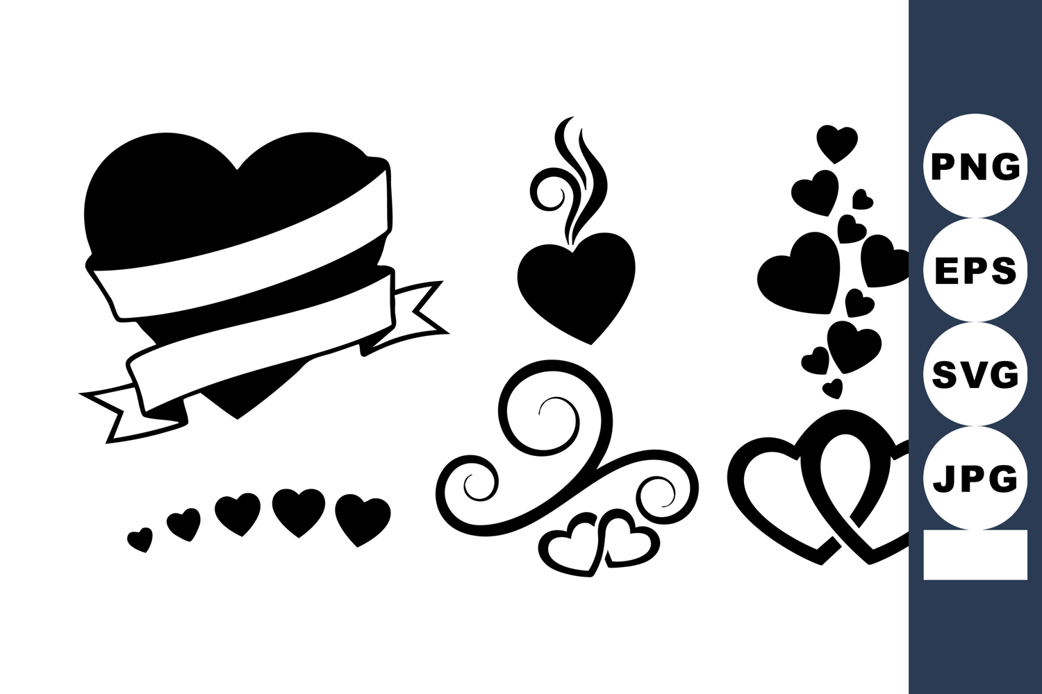 Decorative Design Elements Love Symbols Vector Black Heart Shapes Heart Shapes With Ribbon Swirl Steam Ribbon Banner Steam Swirl Linked Hearts Romantic Decorative Vector Simple Decorative Design Charming Romantic Mood