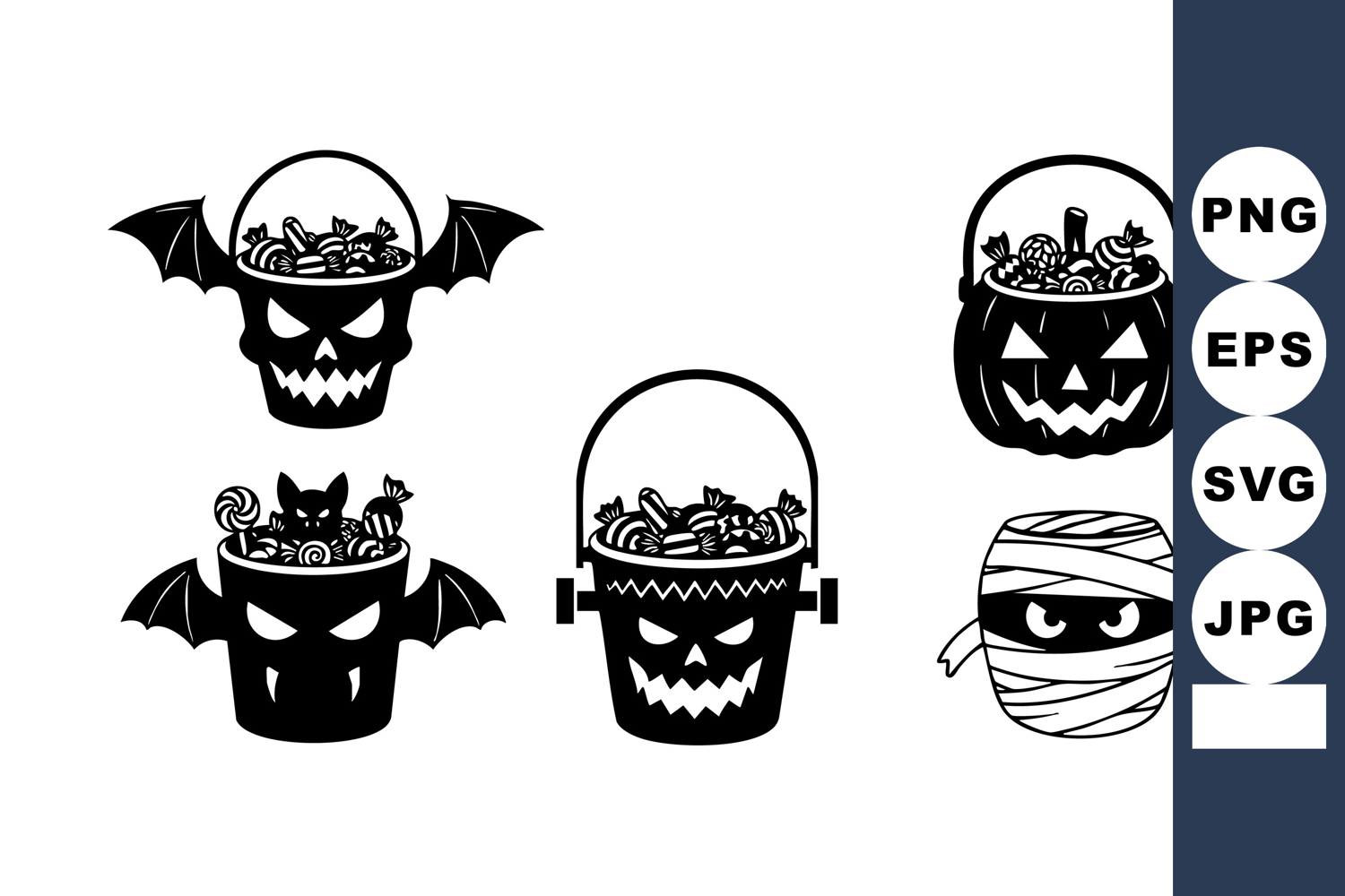 Halloween Candy Buckets Skull Pumpkin Mummy Vector example image 1