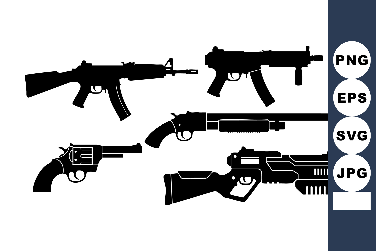 Vector Collection Black Silhouette Guns Rifles Pistols example image 1