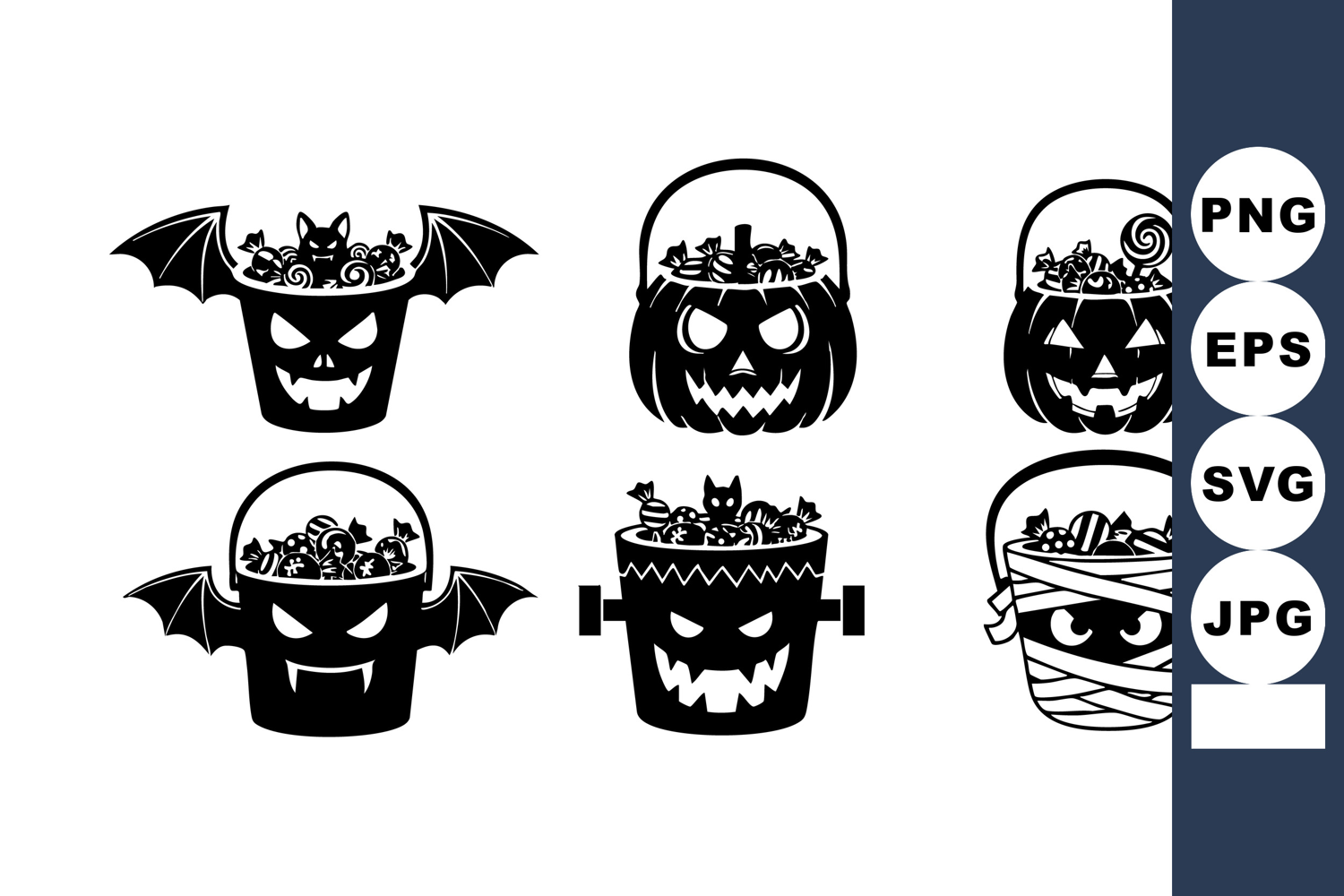 Halloween Pumpkin Bucket Pumpkin Bucket Candy Bucket Candy Spooky Candy Spooky Face Spooky Face Jackolantern Face Jackolantern Black Jackolantern Black White Black White Treat White Treat Ghost Treat Ghost Bat