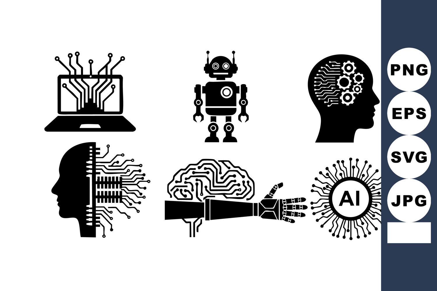Artificial Intelligence Robot Brain Circuit Vector Illustrat example image 1