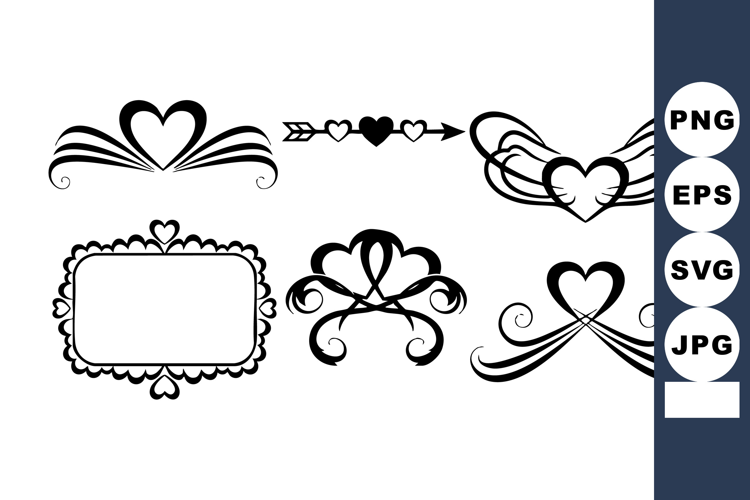 Heart Frame Elements Vector Set With Love Symbols example image 1