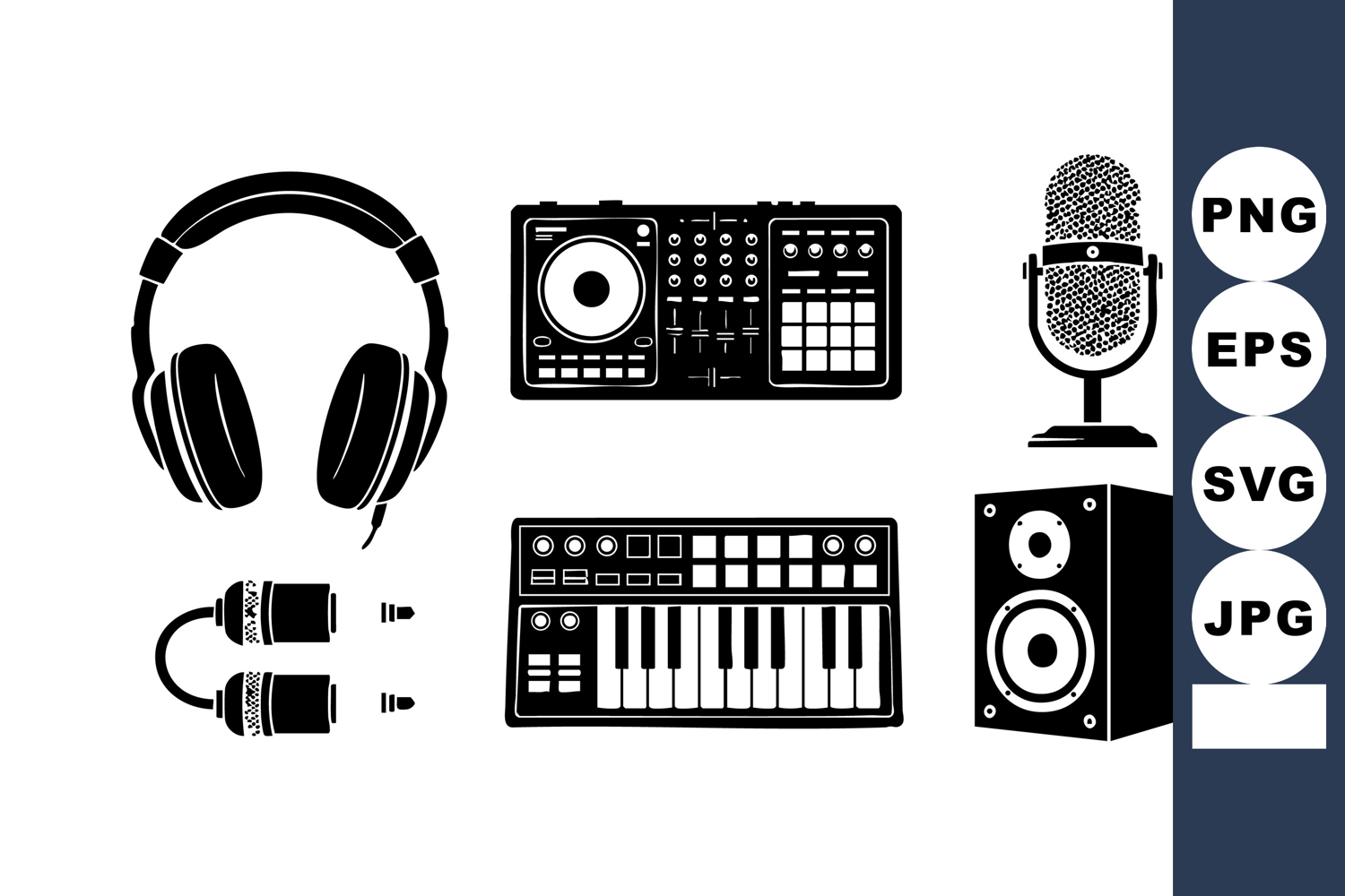 Audio Equipment Headphones Mixer Microphone Vector example image 1