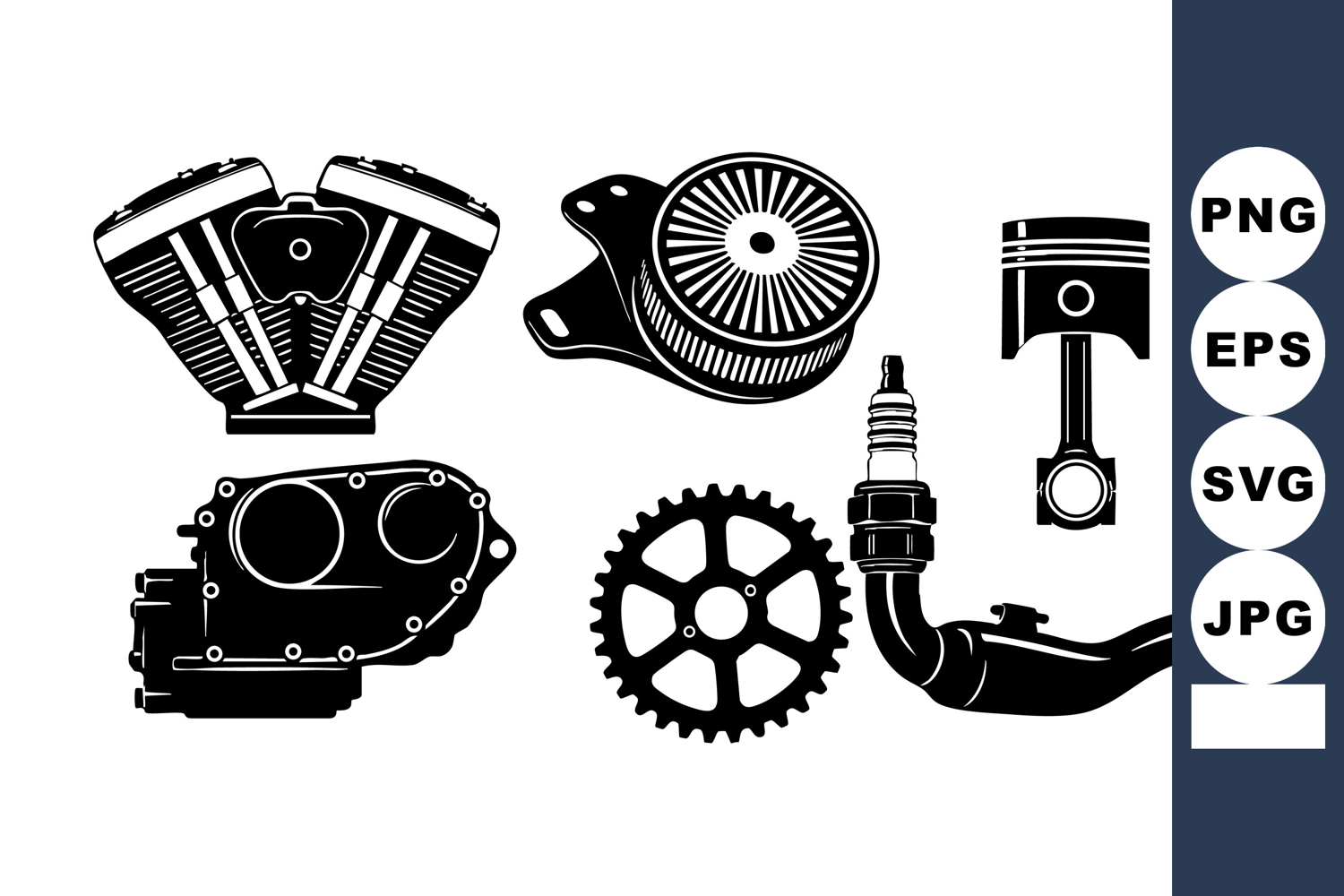 Motorcycle Engine Parts Collection Black Silhouette example image 1