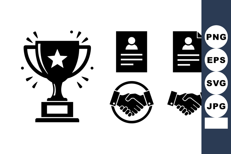 Trophy Award Handshake Agreement Icons Illustration example image 1