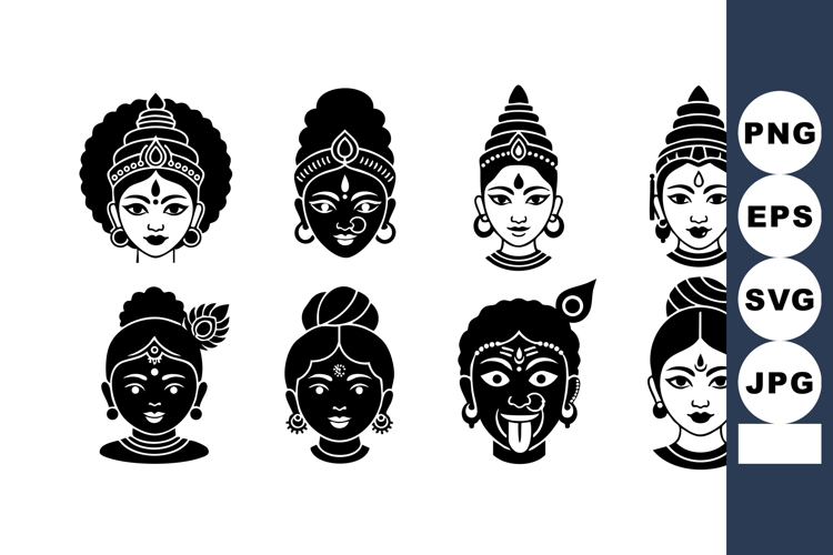 Traditional Goddess Heads Black White Vector Illustration example image 1