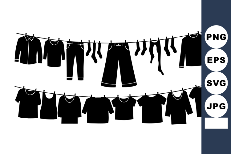 Black Silhouette Clothes Hanging On Line Vector example image 1