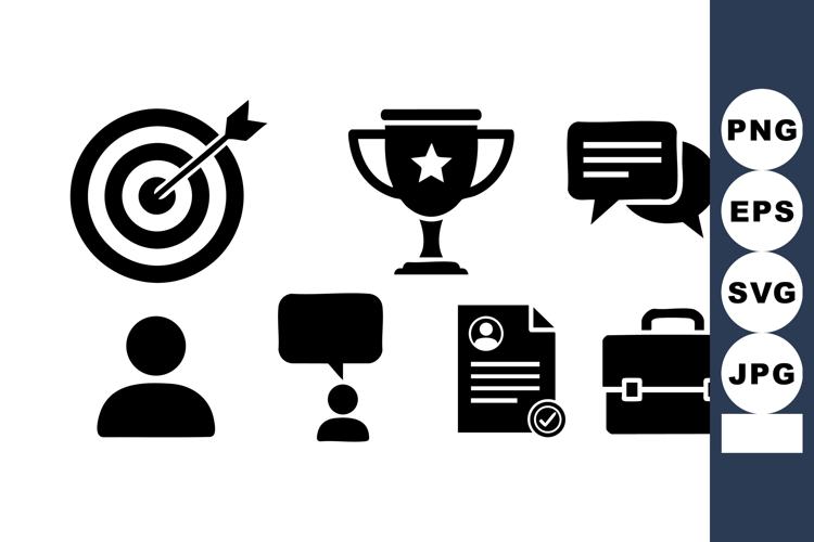 Simple Black Icons Business Communication Icons Target Achievement Trophy Professional User Profile Modern Clean Style Communication Concept Symbols Business Success Icons Chat Conversation Symbol Office Work Design Briefcase Document Icon