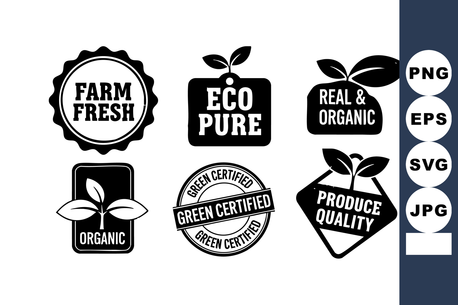 Organic Farm Fresh Produce Quality Labels Farm Fresh Eco Fresh Eco Pure Eco Pure Green Pure Green Certified Green Certified Produce Certified Produce Quality Quality Labels Vector Labels Vector Black