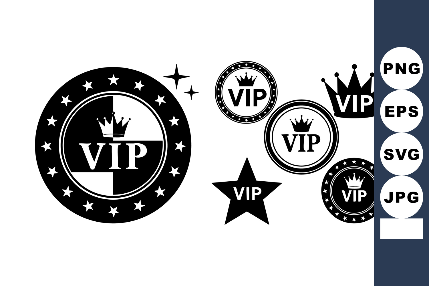 Black White Vip Badges Crowns Vector Set