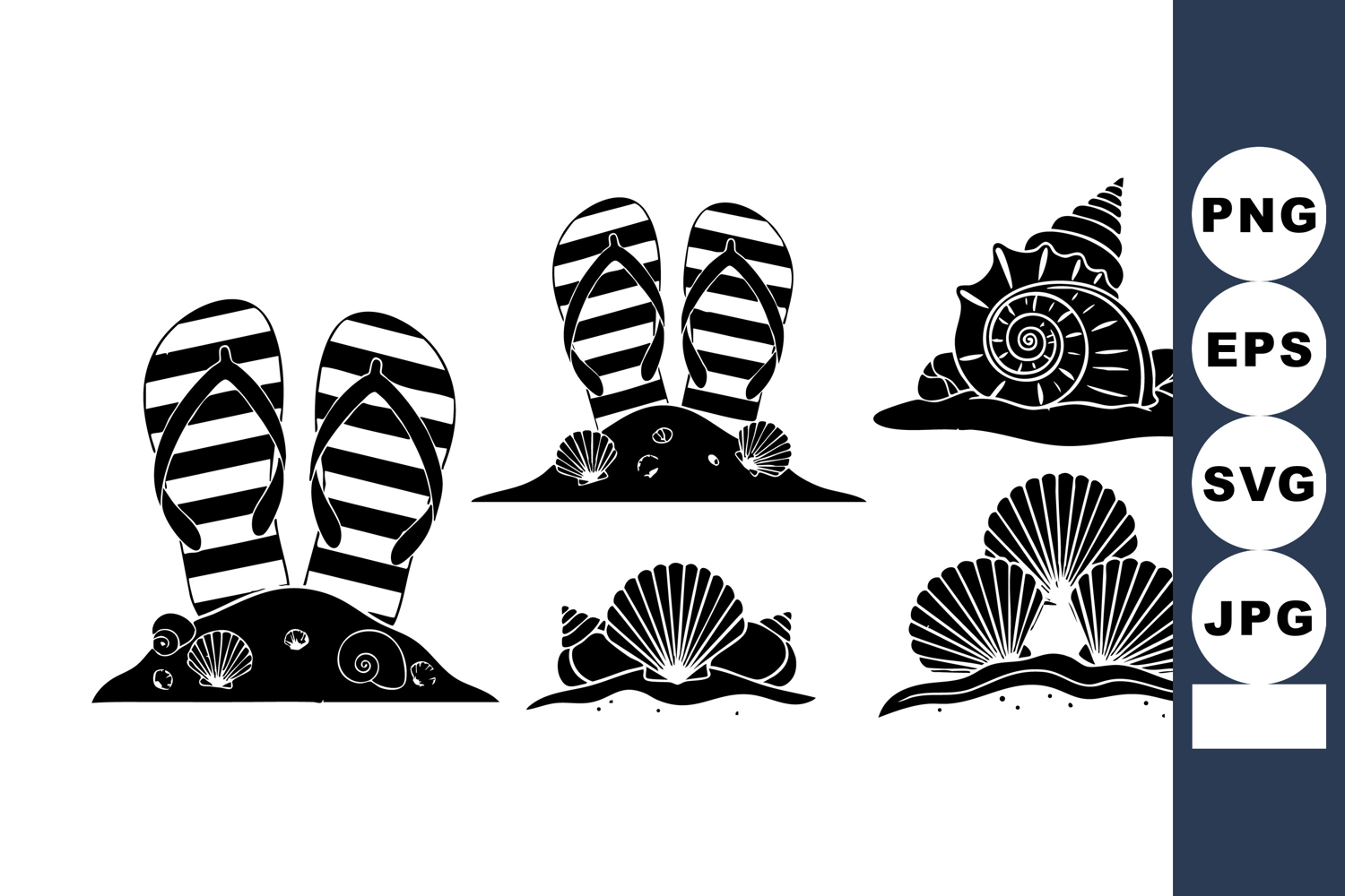 Similar Design Products to Black White Flip Flops Seashells Vector Illustration