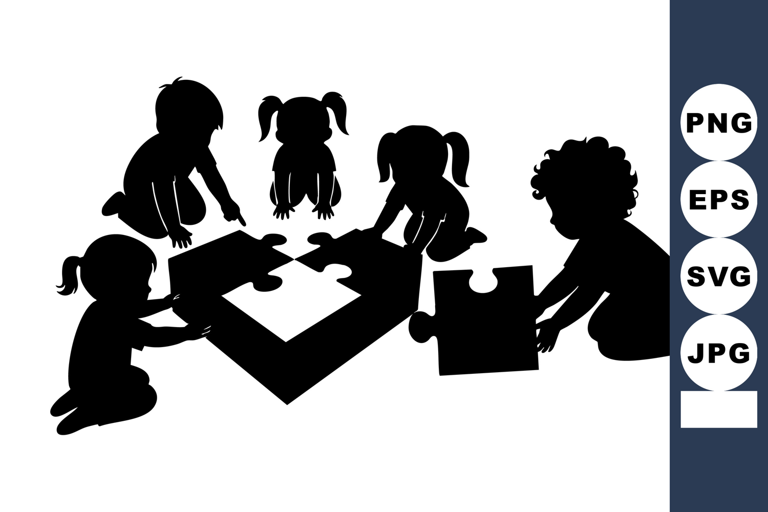 Similar Design Products to Silhouette Children Playing Puzzle Vector Illustration