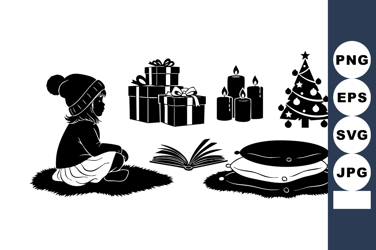 Silhouette Child Winter Hat Christmas Gifts Scene example image 1