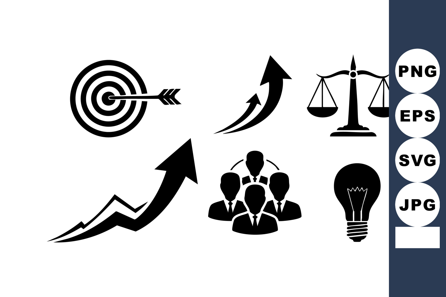 Light Bulb Idea Business Growth Success Target Arrow Icon Upward Graph Chart Team Leadership Group Balance Scale Justice Innovation Creativity Strategy Goal Achievement Finance Marketing Management Communication Solution Planning Development