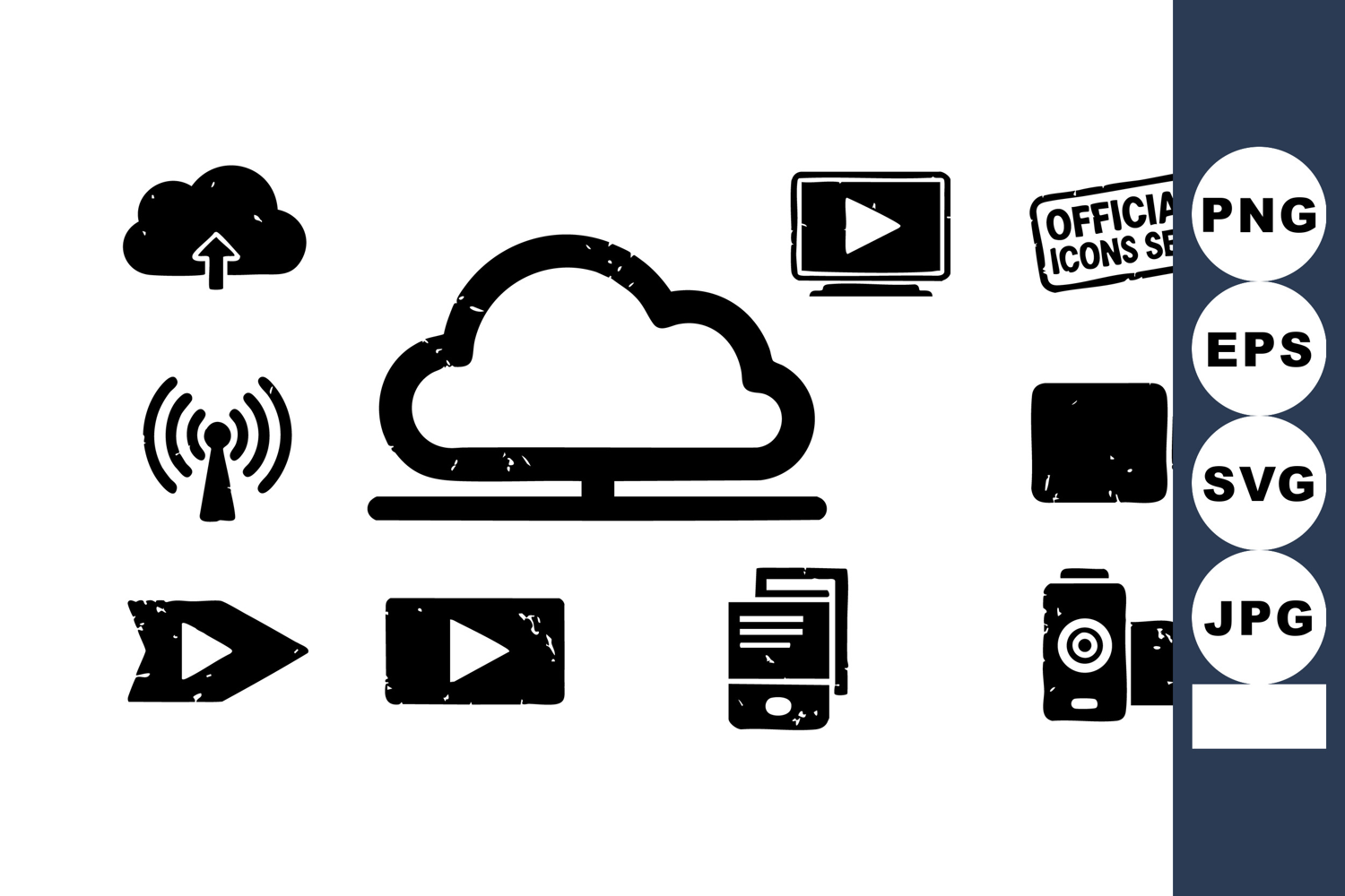Black Silhouette Cloud Computing Media Icons Set example image 1