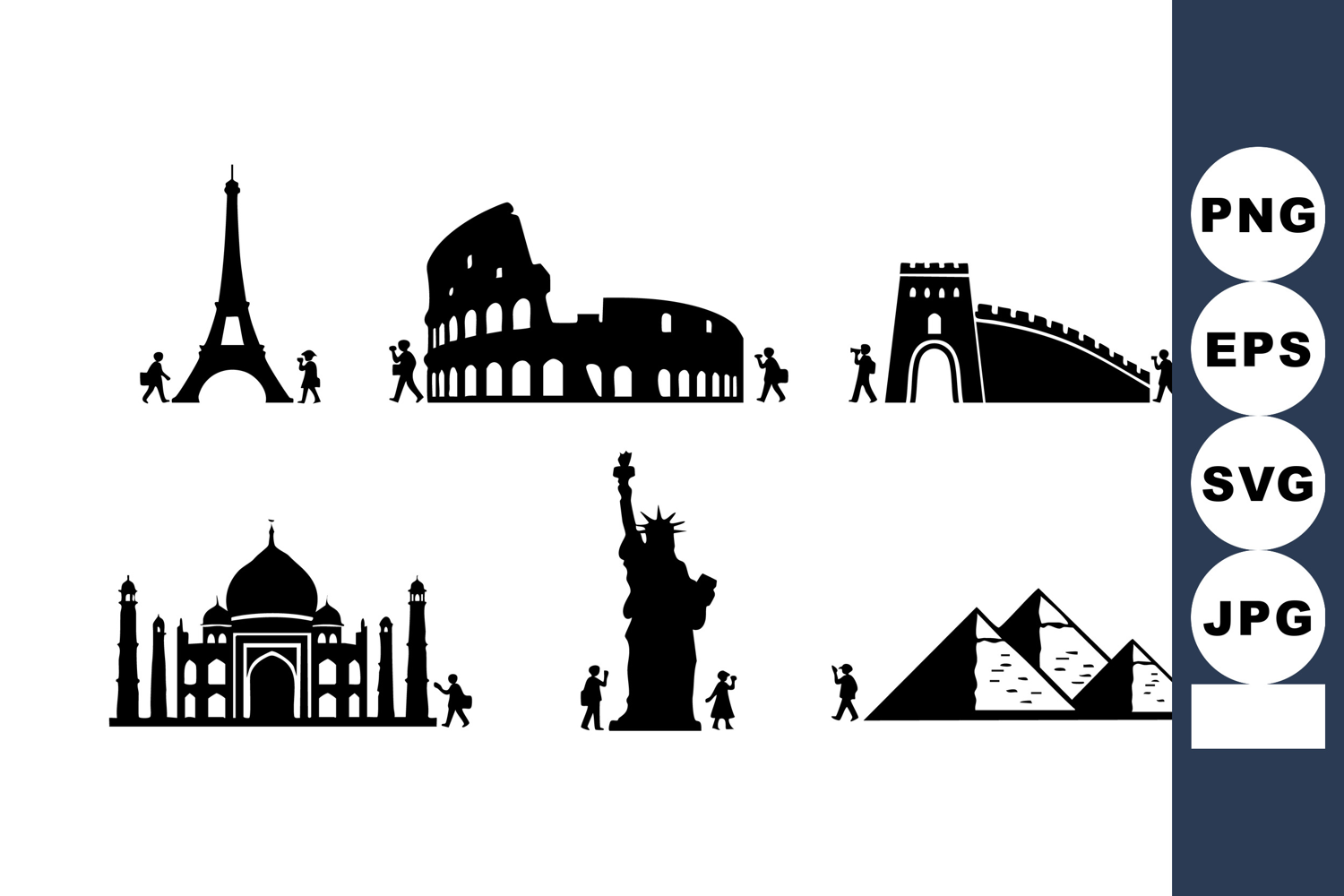 Famous World Landmarks World Landmarks Silhouettes Landmarks With Tourists Silhouettes With Tourists Tourists Walking Landmarks Iconic World Landmarks World Travel Landmarks Historical Landmarks Silhouettes Monument Silhouettes Vector Travel Tourist Landmarks