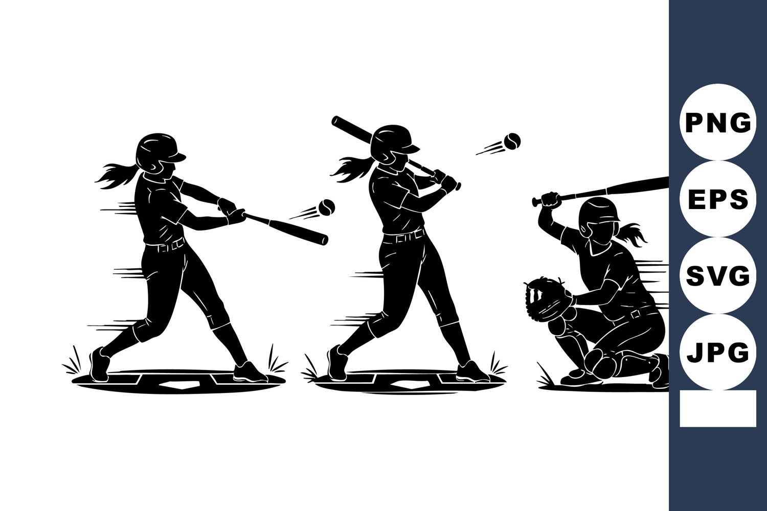Softball Player Silhouette Player Swinging Bat Female Softball Players Female Athlete Silhouette Softball Batting Action Softball Pitching Motion Softball Catching Pose Athletic Woman Softball Dynamic Softball Players Catcher In Position