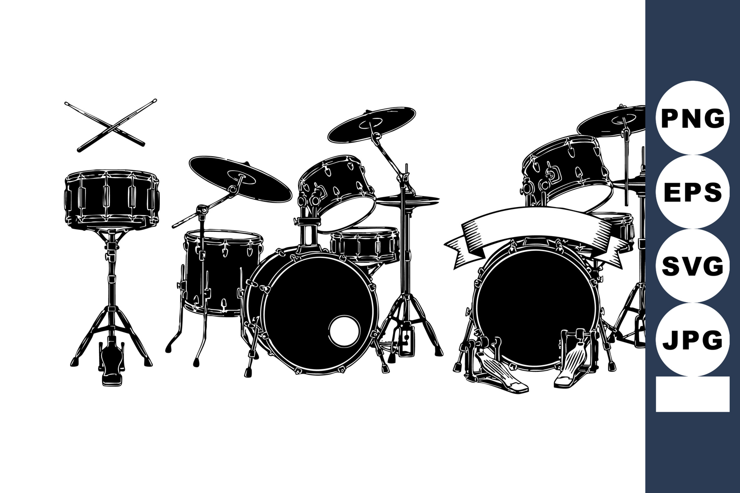 Similar Design Products to Black and White Drum Set Illustration with Banner