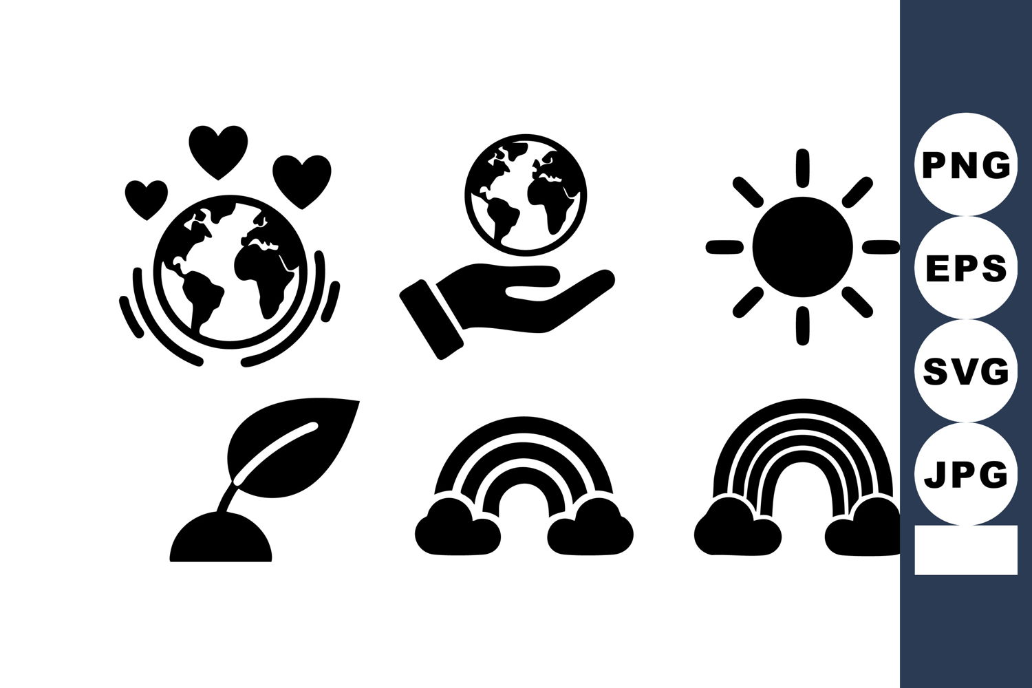 Environmental Icons Globe Heart Hand Earth Sun Leaf Rainbow example image 1