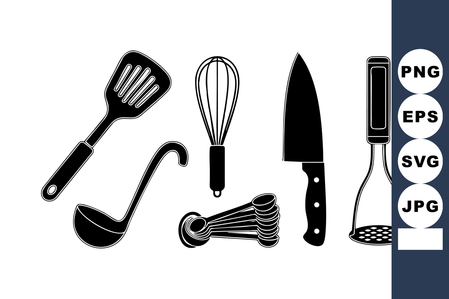 Silhouette Kitchen Utensils Spatula Ladle Whisk Knife example image 1